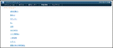 業務ごとに分かれたタブメニューで構成されます。各タブメニューへは、← →キーかマウスでクリックして移動します。全ての操作はこの画面から行います。なお、権限の有無により表示されるタブメニューが異なります。