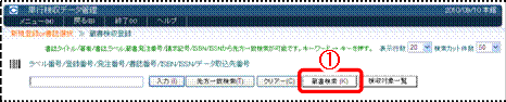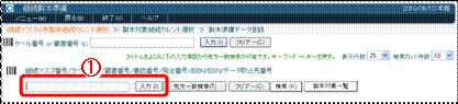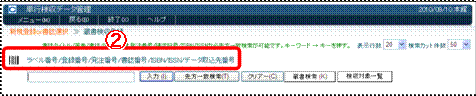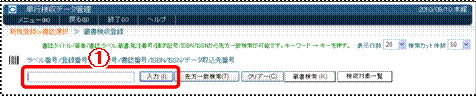 (1) ラベル番号または蔵書番号を入力し(バーコードリーダーで読み取り)、入力〈画面19−@〉をクリックしてください。