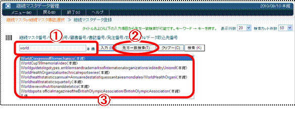 継続資料の場合、タイトルか短縮キーの先頭の何文字かを入力して検索することもできます。