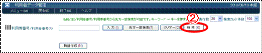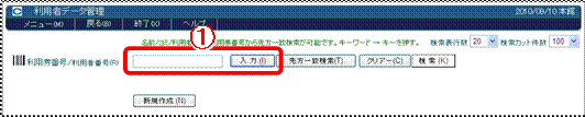☞ 利用者番号か利用券番号を入力して、入力をクリックしてください〈画面15−@〉。