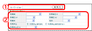 (2) 利用者のキーワードを入力して、検索をクリックしてください〈画面17−@〉。