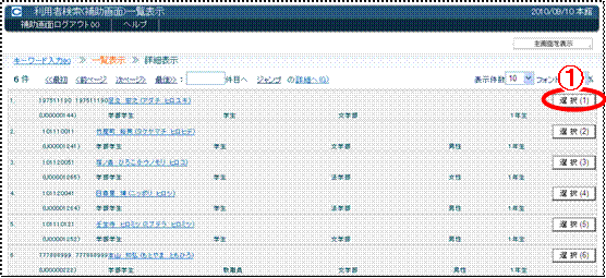 (3) 利用者一覧が表示されたら、選択する利用者右横の選択〈画面18−@〉をクリックしてください。このステップで利用者の選択完了です。
