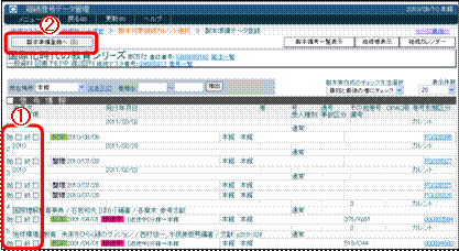 (2) 製本する対象をチェックし〈画面22−@〉、製本準備登録へ〈画面22−A〉をクリックしてください。このステップで継続マスタからの選択完了です。