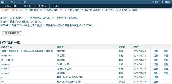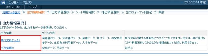 図書館スタッフが任意のデータについて、Excelファイルを出力することが可能な処理です。
