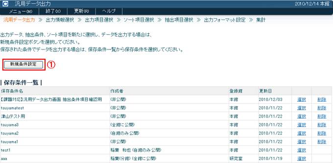 新規条件設定〈画面2−@〉をクリックして、出力情報選択画面を表示することができます。