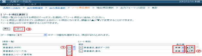 ▲、▼で抽出項目の順番を決定したら、次へ〈画面6−A〉をクリックして次の画面に移動します。