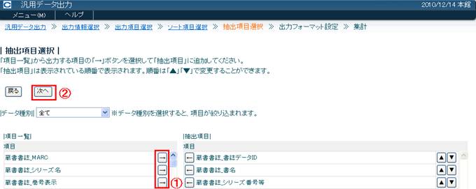 抽出項目の選択を行います〈画面6〉。