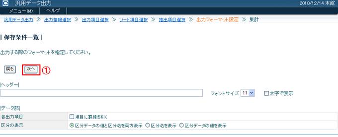 汎用データ出力画面を表示します〈画面1〉。